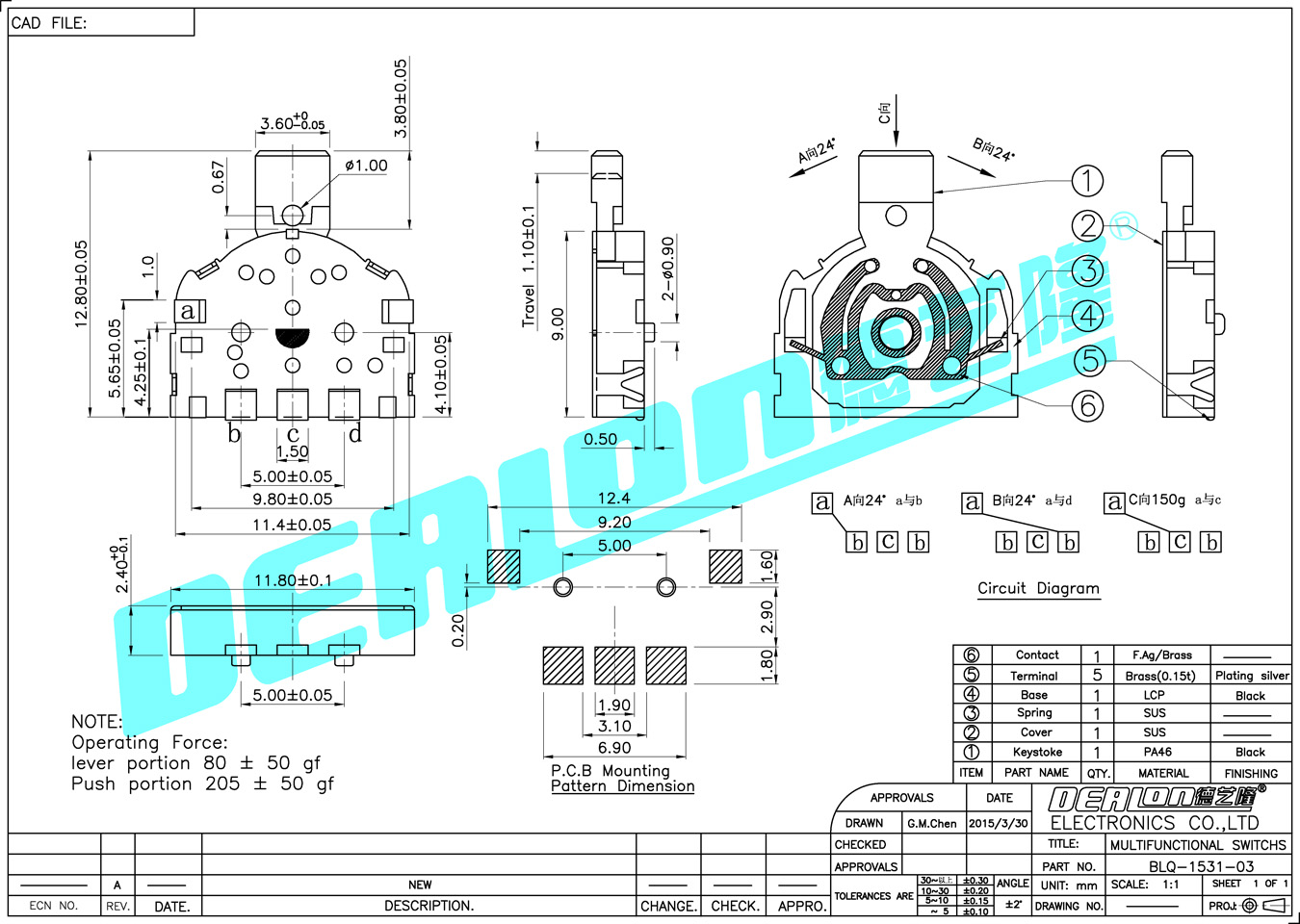4-direction-20°-0°+20° Center push0.7mm±0.1mm