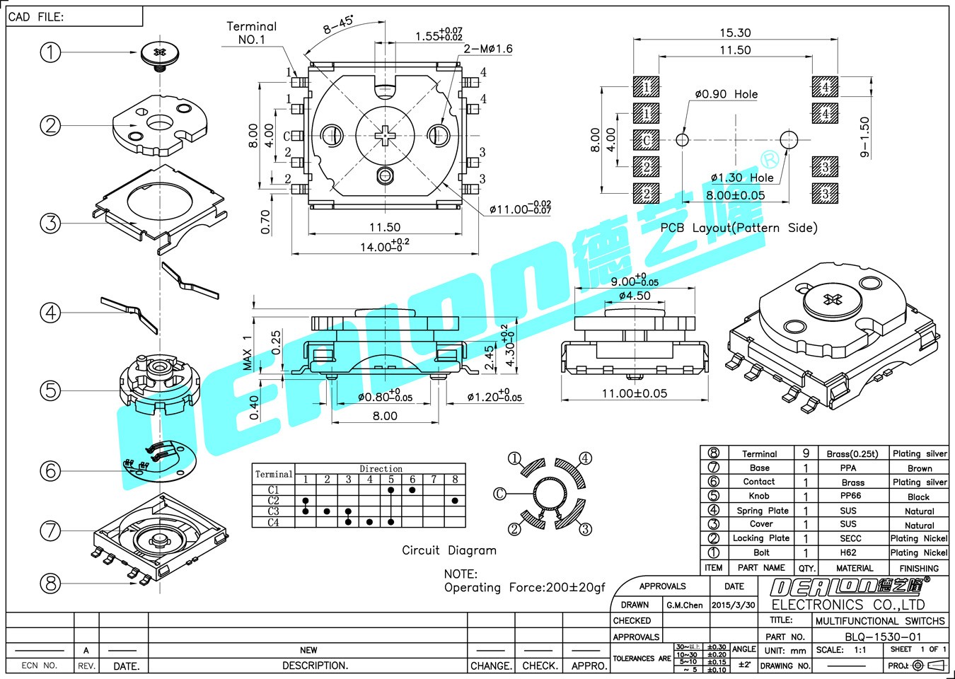 4-direction-20°-0°+20° Center push0.7mm±0.1mm