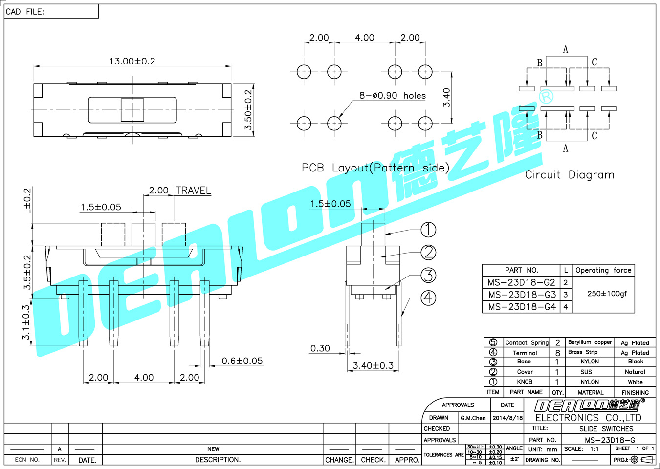 撥動開關 MS-23D18